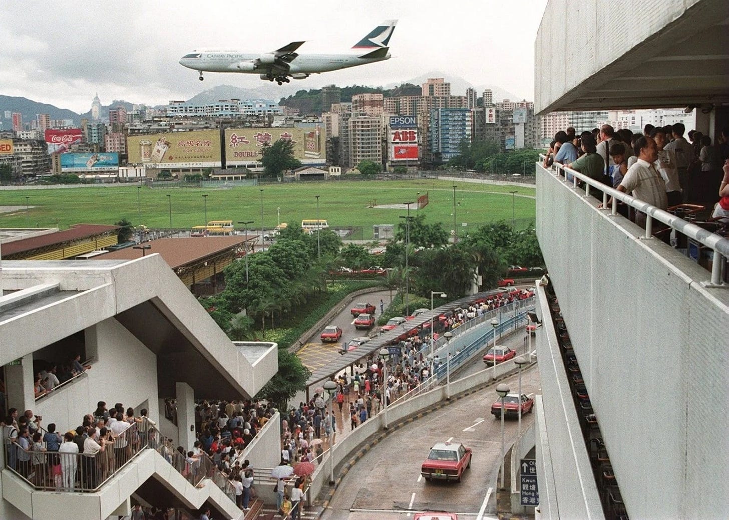 This picture was taken in July 1998, when a large crowd gathered at the airport as they witnessed the last flight landing there.